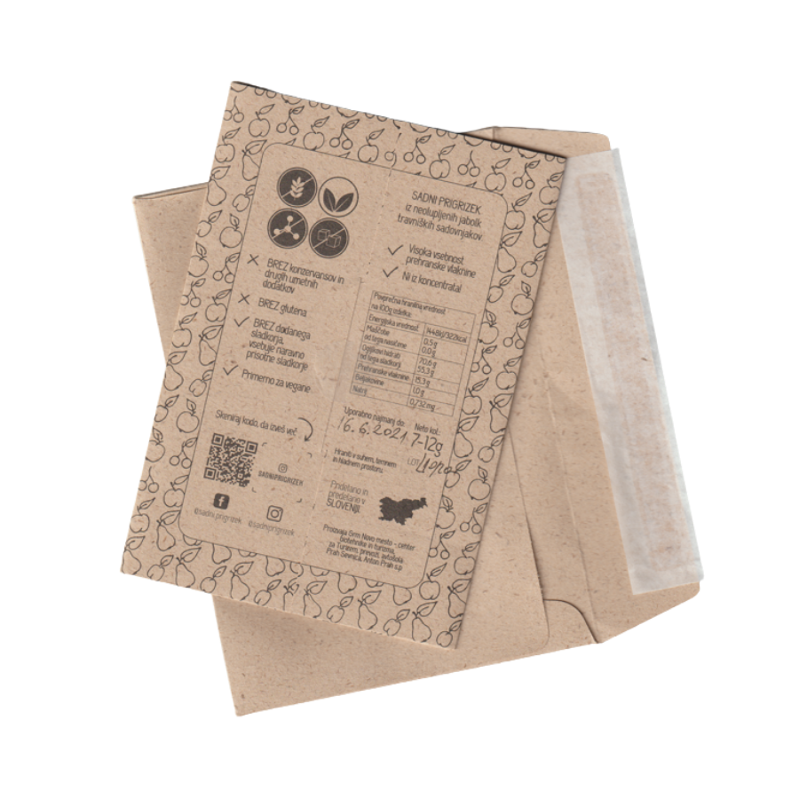 Sestavine: 100 % jabolko. Vsebuje samo naravno prisotne sladkorje. Brez konzervansov in drugih umetnih dodatkov, brez glutena, primerno za vegane.