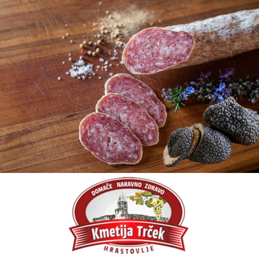 Vsi mesni izdelki kmetije Trček so pripravljeni iz mesa doma vzrejenih živali, ki jih krmijo z lastno pridelano krmo. Izdelani so po starih recepturah prednikov, ki so kot začimbo uporabljali le poper in sol. Zagotovo v njih ne boste našli umetnih aditivov ali drugih zdravju škodljivih dodatkov.
